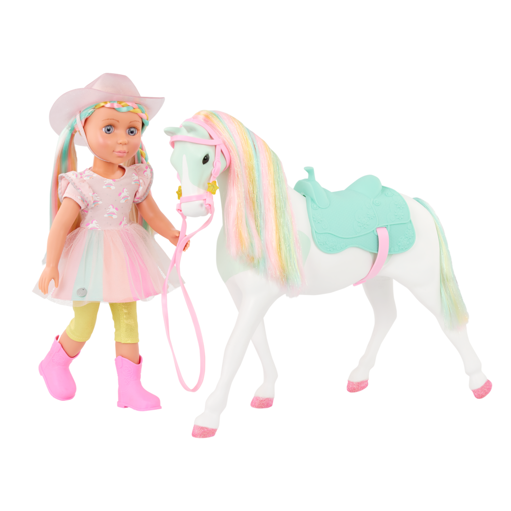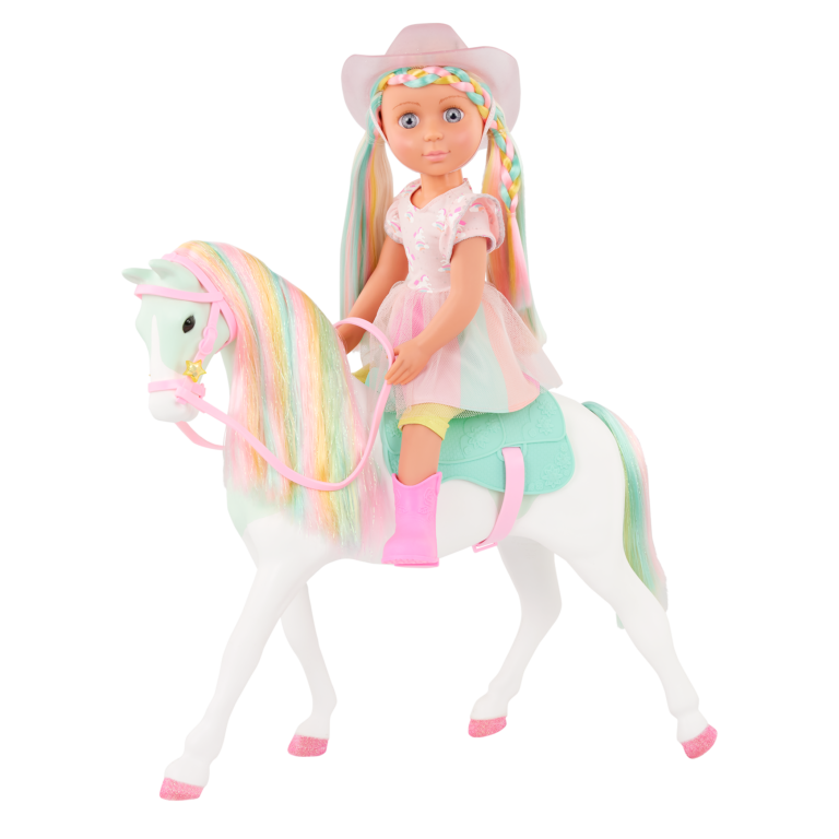 14″ Doll and Horse with Rainbow Mane