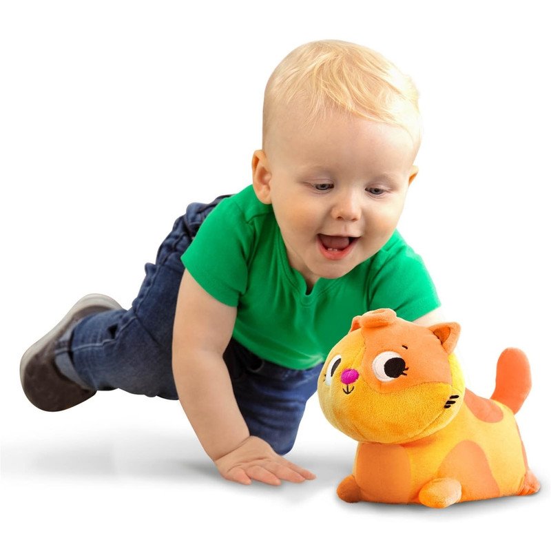 A talkative little buddy to keep little caterpillars busy! Gently press his back to watch him walk around. Make baby crawl – this kitty will inspire toddlers to crawl. Listen to your companion meowing and sneezing as it walks. The plush will start to snore when it falls asleep. Press her back to wake her up.