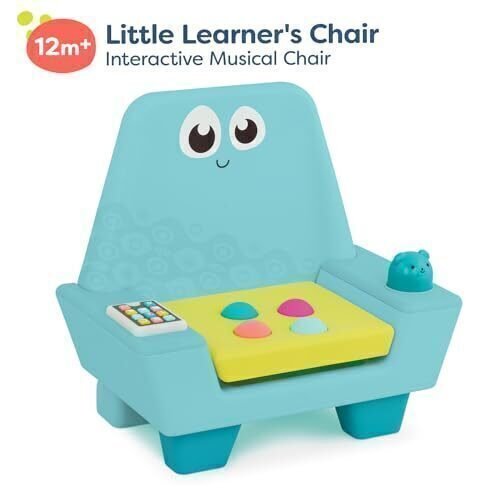 Play, learn, take a seat, or move to the beat with the Little Learner’s Chair from B. play! This interactive chair is sized just right for toddlers and it comes with a ton of fun features to explore. Little ones can play with the light-up tablet, which includes buttons for letters, numbers, shapes, and sounds. Children can then pop the soft ?n? colorful buttons on the seat or push down on the lil? blue bear for silly squeeeaks! Not to mention, this chair also features storage space right underneath the seat. All kids need to do is lift up the lid to put away their tiny treasures. And when kids close the lid, they?ll discover a musical surprise! Playing with this interactive chair not only comes with tons of interactive fun, but it can also improve sensory development and cause-and-effect learning. 3 AA batteries are required and included. Recommended for toddlers 12 months and over. B. sure to check out B. play?s playroom pals ? B. toys, B. baby, and B. spaces!.
