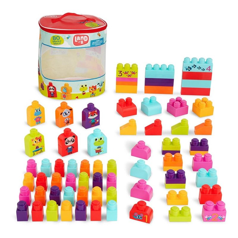 B Toys Mini Builder?s Blocks is create something great with the LocBloc Mini Builder?s Blocks from Land of B.. This STEM set comes with 80 colorful and numbered blocks that toddlers can use to dream up a ton of structures. These building blocks feature the numbers 1 to 6, fun illustrations and Land of B. Friends. Kids can learn their 123s, practice counting, then mix and match the cute characters. Building and creating with these tiny hands-friendly blocks fosters the imagination, improves fine motor skills and color recognition skills, develops hand-eye coordination and introduces kiddos to different animals. And if you want to grab this playset on-the-go, simply store all 80 pieces in the handy portable pouch. Recommended for children 12 months and over.