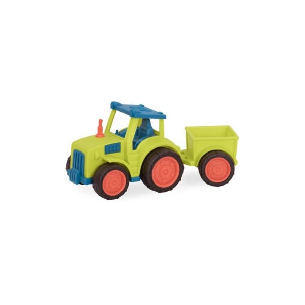Battat Tough Truckles Construction Set includes a colorful dump truck and a tow truck, as well as 2 little drivers. Fill the dump truck, then tilt its container over to empty the contents. Kids can also move the crane truck?s arm and pretend to tow other cars. Both vehicles in this set have soft wheels that won?t scratch floors and they are perfectly sized for toddler hands. Create all kinds of imaginary scenarios, roll around the playroom and keep kids busy with this versatile pair of toy trucks. Playing with Tough Truckles promotes creativity and active play while helping to develop language and fine motor skills. This set of toy trucks for toddlers is recommended for kids 12 months and up.