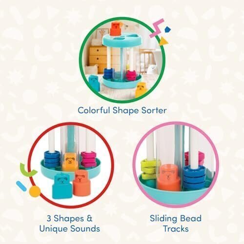 Unlock the world of shape recognition and auditory learning with this delightful shape sorter toy from Battat. Designed for toddlers aged 18 months and above, this colourful educational toy features three distinct shapes and engaging sounds that captivate young minds. As your little one sorts the vibrant pieces into their respective slots, they develop essential cognitive skills such as problem-solving, hand-eye coordination, and shape identification. The compact and durable design ensures hours of interactive play, fostering a love for learning through engaging sensory experiences. Encourage your child’s growth and development with this versatile shape and sound sorter toy.