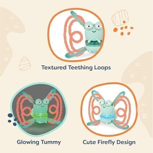 Take a lil’ nibble with Spark Buddy from B. baby! This light-up teething toy is a friendly firefly that’s ready to make soothe babies and ’em smile. Babies can grab onto this developmental toy with their hands or use it to soothe their gums thanks to the teething-safe rings. But that’s not all! Give this firefly and lil’ shake and it shines with a gentle, pulsing light. This baby toy is great at home or on-the-go in the car or stroller, and it helps promote babies’ sensory development! 3 x AG9 batteries are required and included. Recommended for children 3 months and over.