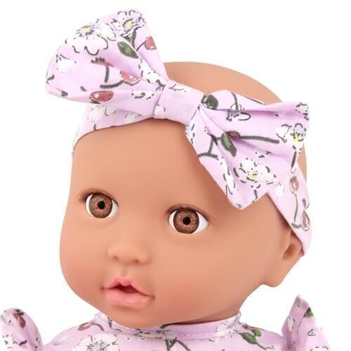 Discover fun ways for little ones to care for their baby doll with the LullaBaby doll & floor pillow set. 14 inches of cuteness from head to toe, this LullaBaby doll has a friendly facial expression, brown eyes (fixed open), detailed hands and feet, and a soft body for little hugs. It’s dressed in a pink sleeper outfit with sweet florals and a matching headband that kids can easily remove when it’s changing time. This adorable set also includes a floor pillow that’s lined with soft plush to give baby a dreamy play space. Plus, the pacifier accessory lets kids soothe their baby doll during role-play. LullaBaby dolls and accessories encourage imagination and inspire kindness as kids play and grow with their baby dolls. Safety tested to meet all regulatory phthalates and BPA requirements. Makes a wonderful gift for kids ages 2 years old and up and a perfect first baby doll for toddlers.