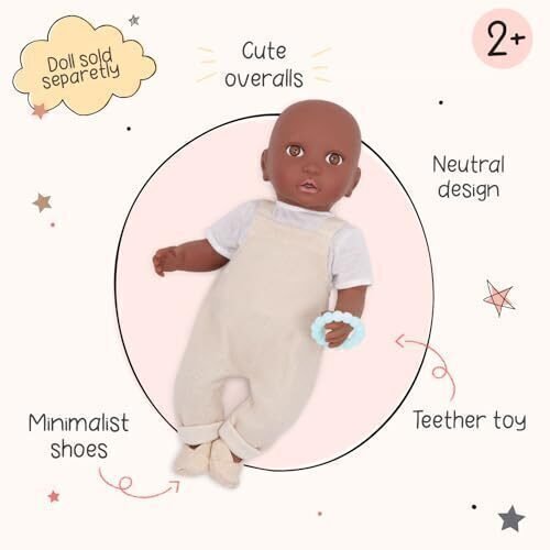 Get baby doll ready for days of play with the stylish LullaBaby doll jumper outfit. Kids can explore fashion fun as they style their doll in a cute jumper and top ensemble. And they can bring baby on the go by completing the outfit with the included shoes. With easy-open closures, LullaBaby outfits help children easily dress their dolls while exercising fine motor and social skills. Perfectly sized for young nurturers to cuddle, carry, and love, LullaBaby dolls encourage children to develop empathy and caring qualities the more they play and grow with their doll. This baby doll clothing set fits most 14″ baby dolls, doll clothing, and accessories. Makes a wonderful gift for kids ages 2 years and up. LullaBaby dolls sold separately.