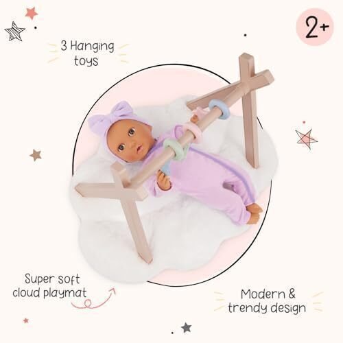 Little ones can easily explore fun time with their baby doll as they role-play with the adorable LullaBaby playmat set. Help your baby doll crawl on the soft and comfy floor mat. Then place them under the floor gym to play with the 3 hanging toys. This play gym comes together in 3 easy steps, so kids can play with their dolls while exercising fine motor and social skills right away. Perfectly sized for young nurturers to cuddle, carry, and love, LullaBaby dolls encourage children to develop empathy and caring qualities as they play and grow with their dolls. This LullaBaby doll accessory set is compatible with most 14″ baby dolls and accessories. Suggested for kids ages 2 years old and up. LullaBaby dolls sold separately.