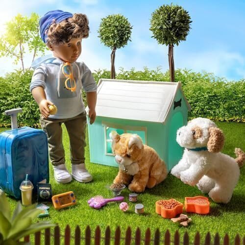 Give animal fans an awesome playhouse to care for their pets with the Our Generation Puppy Place accessory – including a 6-inch pup to welcome into their collection! – This bright blue dog house has cool details like an opening roof – multiple lookout windows – storage hooks – and a real chalkboard sign for kids to write their puppy’s name! Plus, – it comes with bonus play pieces like a dog collar – an attachable leash – food and water bowls – a newspaper – a dog treat – a toy ball – and chalk. – Our Generation doll accessories make a wonderful gift for kids ages 3+ (small parts) – encouraging them to imagine their own unique stories. Compatible with most 18-inch dolls, 6-inch stuffed animal toys – and makes a fun addition to dollhouse playsets. – Dolls sold separately.