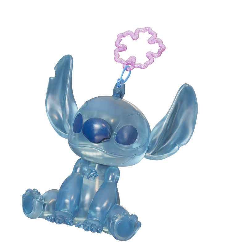 DISNEY SQUISHY FRIEND STITCH! EACH RUBBERY SQUEEZABLE TOY WITH OVER 20 INTERACTIONS, INCLUDING SQUISHING, SQUEEZING, AND MORE, THESE TOYS OFFER ENDLESS ENTERTAINMENT FOR DISNEY FANS OF ALL AGES. AVAILABLE IN 2 ASSORTED FILLINGS — TRANSLUCENT, PEARLESCENT, SPARKLING, AND CONFETTI
