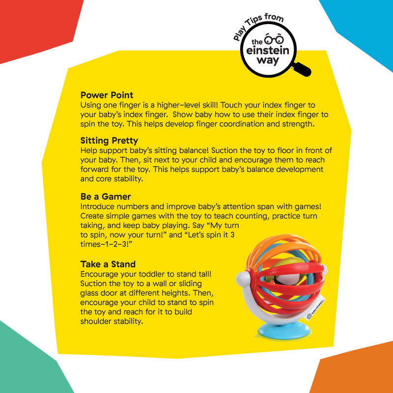 This versatile toy sticks to smooth surfaces like highchair trays or tables, keeping your baby entertained during mealtime or playtime. The colorful spinner has a variety of textures and beads to encourage sensory exploration and develop fine motor skills.