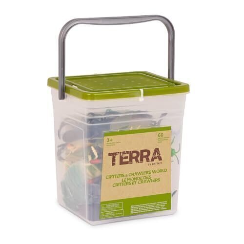 Start a fabulous creepy crawlies collection with the Critters & Crawlers World playset from Terra by Battat! This delightful bucket contains 26 detailed reptile and insect figurines like beetles, grasshoppers, lizards, and sensational scorpions. But that?s not all! Kids can build imaginative scenes or dioramas with 32 little accessories perfect for make-believe play. The realistic sculpting captures the personality of these crawling creatures in a solid and durable design made for years of play. These animal figurines can also help teach and inspire kids about insect and reptile life and nurture compassion for all creatures. It’s the perfect all-in-one set for endless hours of creative play or adding to a collection. Terra animals are also a great fit for themed birthday parties, adding to sensory bins, and giving as party favors. The sturdy bucket with a handle and lid makes for easy storage and travel. Recommended for kids 3 years and over.