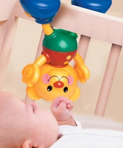 Colours and shapes. Sound and motion. Rattling, rocking, spinning fun! Mirror. Attaches to crib or playpen.